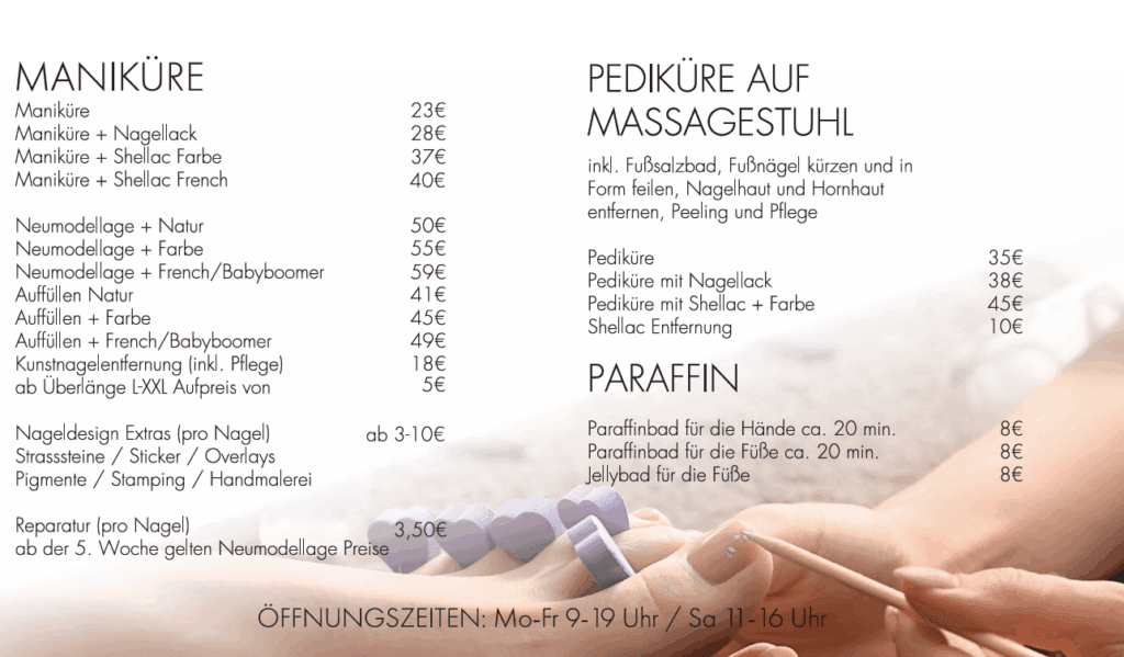 - Sabine A."Das beste Studio in dem ich je war! 😍 Ich bin so zufrieden dort. Alle Mitarbeiterinnen sind total lieb, es wird vor der Behandlung desinfizieren, die Einrichtung ist super schön und hochwertig und mit der Leistung bin ich mehr als zufrieden! "